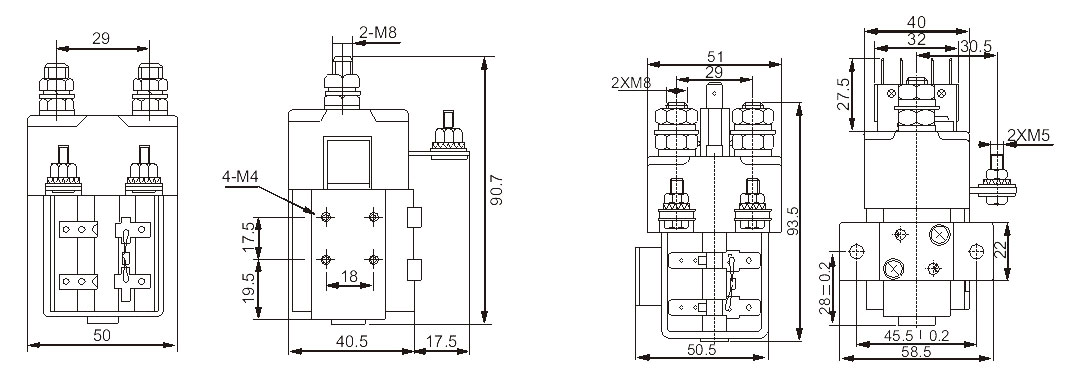 The SW84 features Single pole Double throw, double breaking main contacts with silver alloy tips, which are weld resistant, hard wearing and have excellent conductivity. The SW84 has M8 stud main terminals and 6.3mm spade coil connections. It can be mounted via M4 tapped holes or mounting brackets – either supplied fitted, or as separate items. Mounting can be horizontal or vertical, when vertical the M8 contact studs should point upwards. If the requirement is for downwards orientation we can adjust the contactor to compensate for this. Please note Normally Closed contacts are not suited to make and break load.