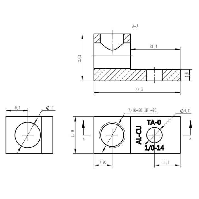 TA-0 TA-2 TA-2/0 TA-6-S TA-250 TA-350 TA-500 TA-600 TA-800 TA-1000 1 Hole One Conductor Aluminum Mechanical Lug