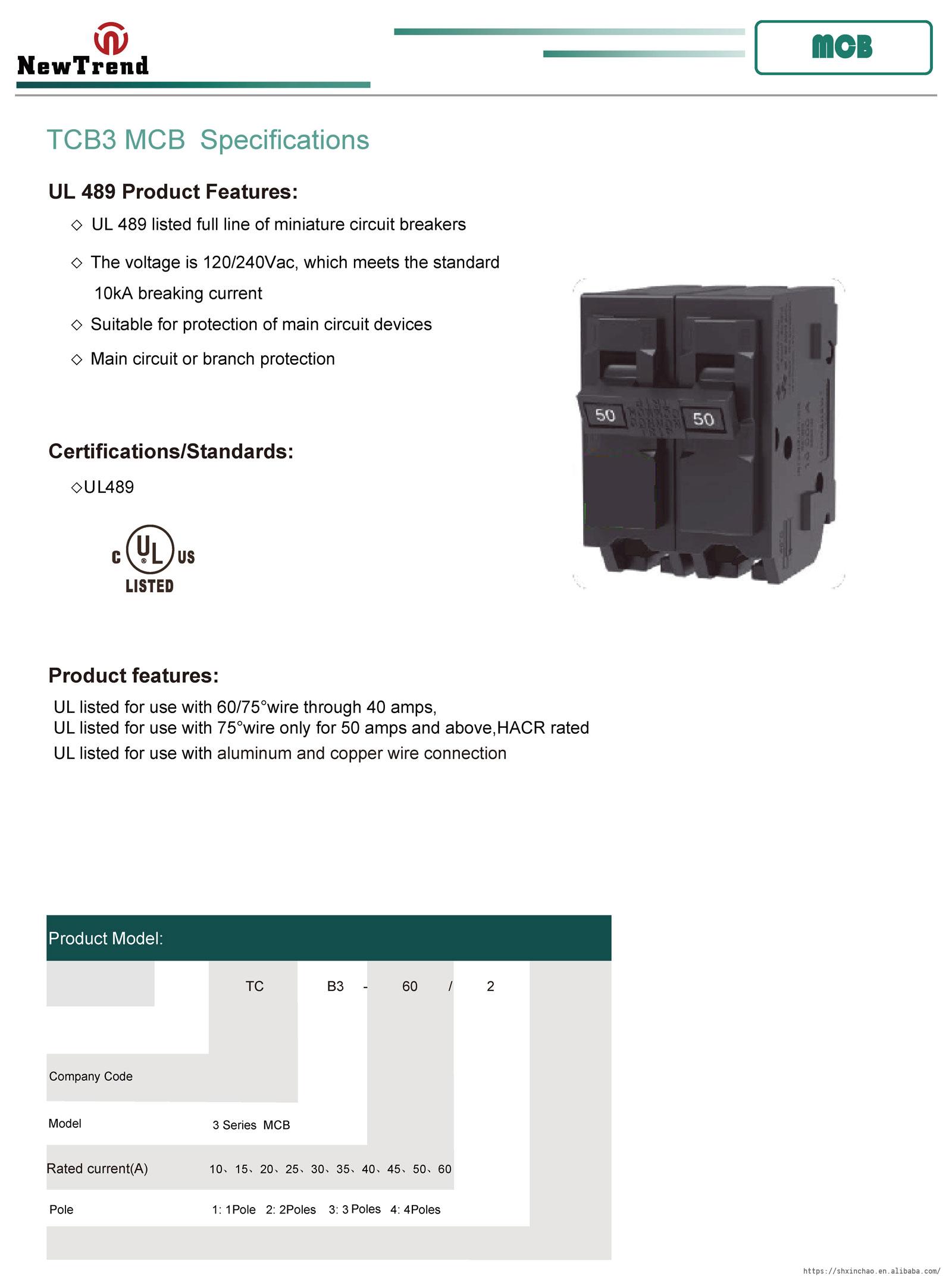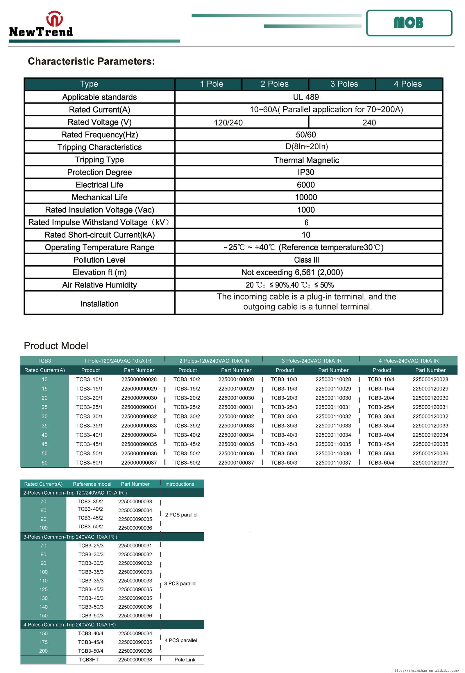 – The voltage is 120/240Vac, which meets the standard 10kA breaking current