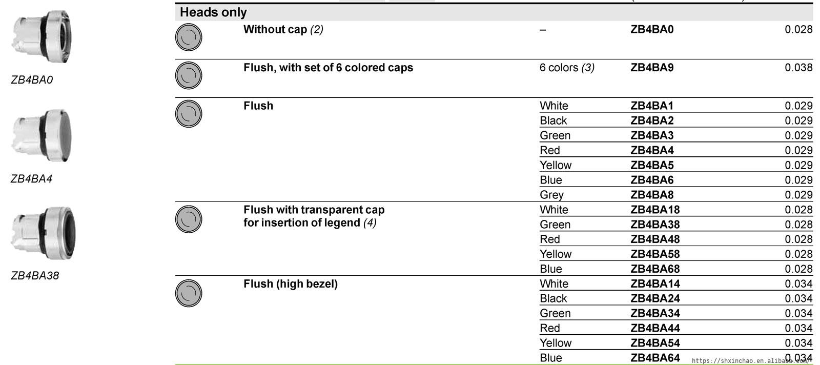 ZB4BA1 ZB4BA2 ZB4BA3 ZB4BA4 ZB4BA5 ZB4BA6 XB4 spare parts Spring return Flush Pushbutton Head