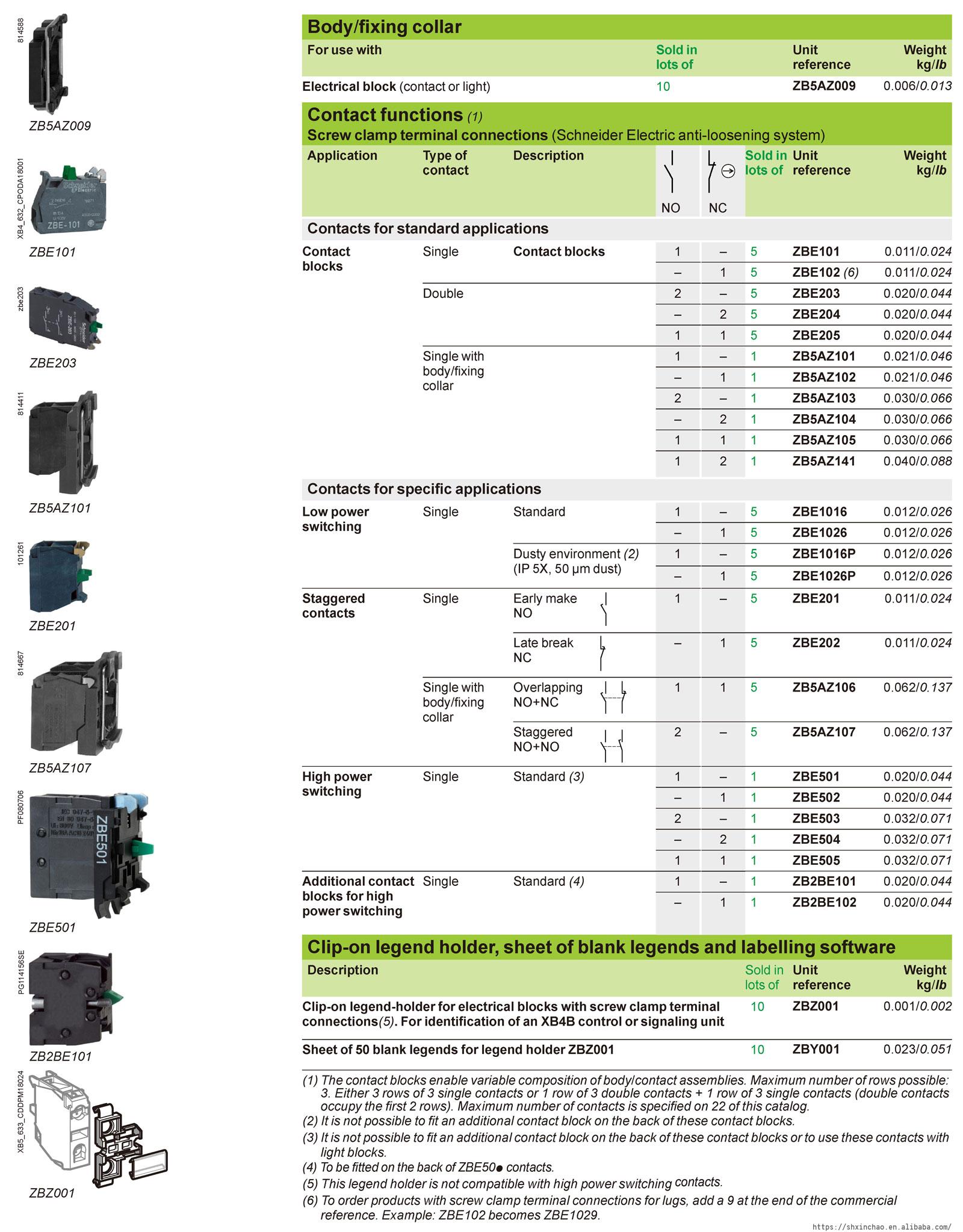– A wide choice of contact blocks for general purposes or specific applications (low current, standard)