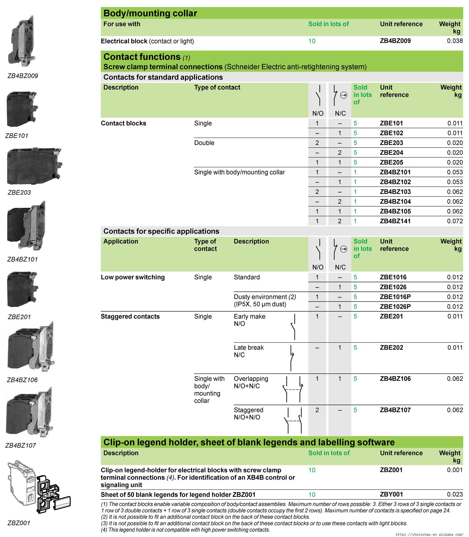 ZBE101 1NO ZBE102 1NC XB4 XB5 Pushbutton spare parts Single contact block