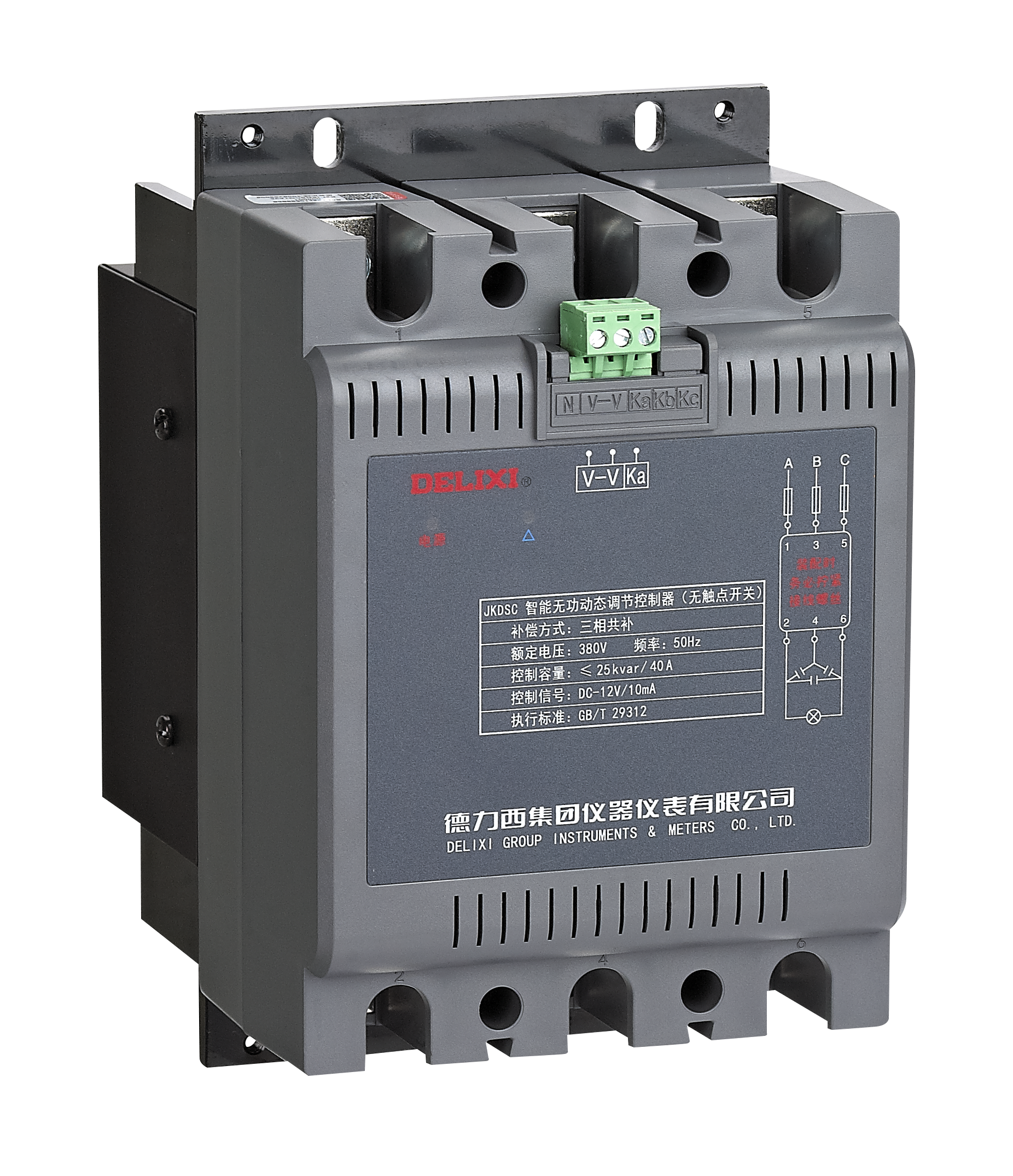 DELIXI JKDSC intelligent reactive power dynamic regulating controller is suitable for dynamic reactive power compensation control and low-voltage power quality optimization.